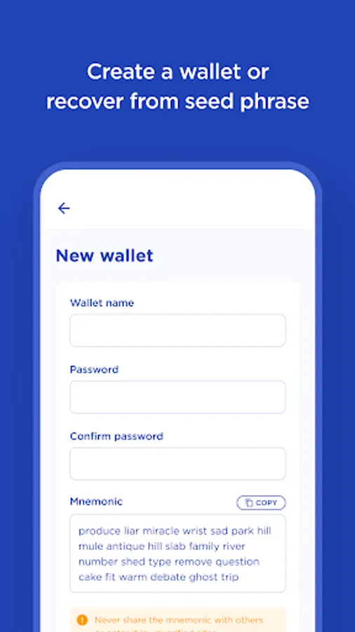 - Non-custodial wallet application (you control your keys)
