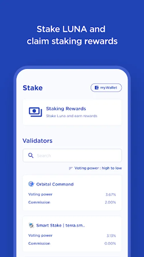 - Stake LUNA and claim staking rewards