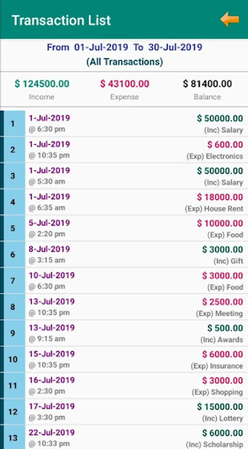 a) Mark your income & expenses with different categories. Several categories provided by default in this app and you can create as many as categories you needed.