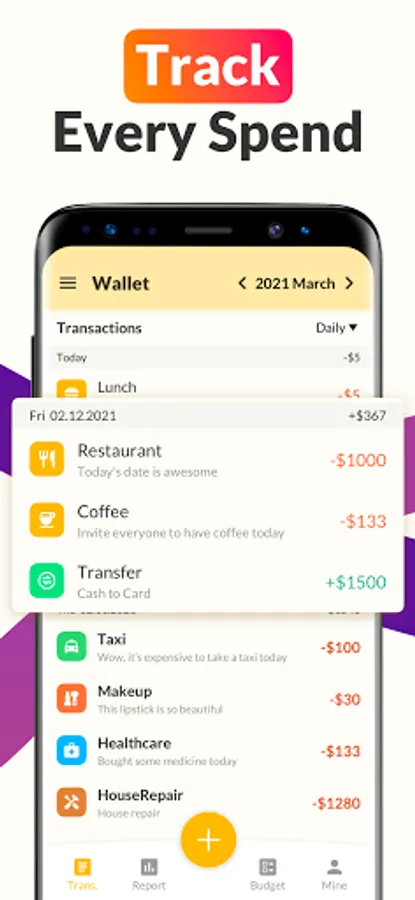 Money Tracker: Expense Tracker, Wallet, Free Budget App can provide a complete picture of your personal finance. Visualize where your money goes to manage personal finance. You can get easy-to-understand reports to take control of your personal finance. The expense tracking tool allows you to clearly understand the money expense in categories.