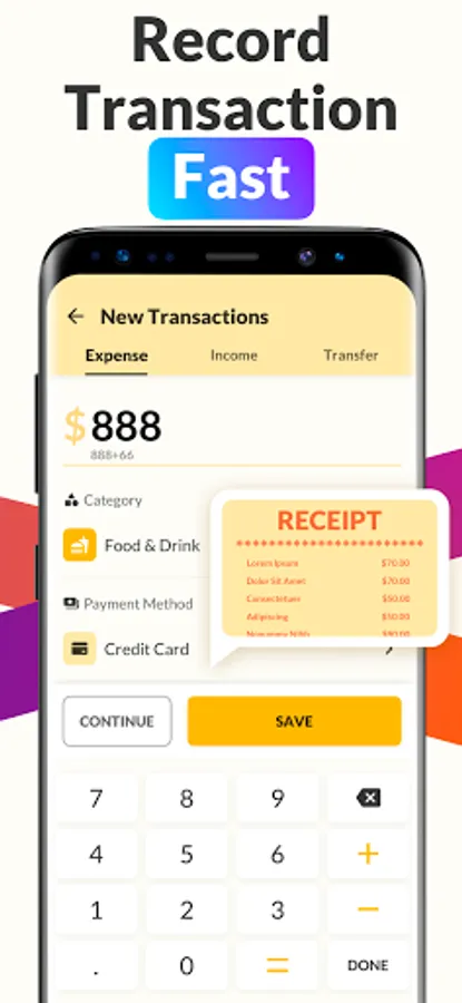 With this free expense tracker, You can track expenses, income and transfers quickly and accurately. The money tracker allows you to choose the expense type and specify the transaction time. In addition, you can add notes and receipts to help you better record your transaction.