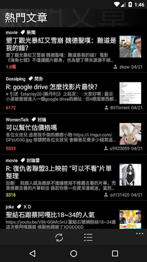 On the phone can also browse Taiwan's largest BBS online community PTT! Even without PTT account can be used! Also registered account on the phone