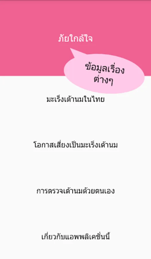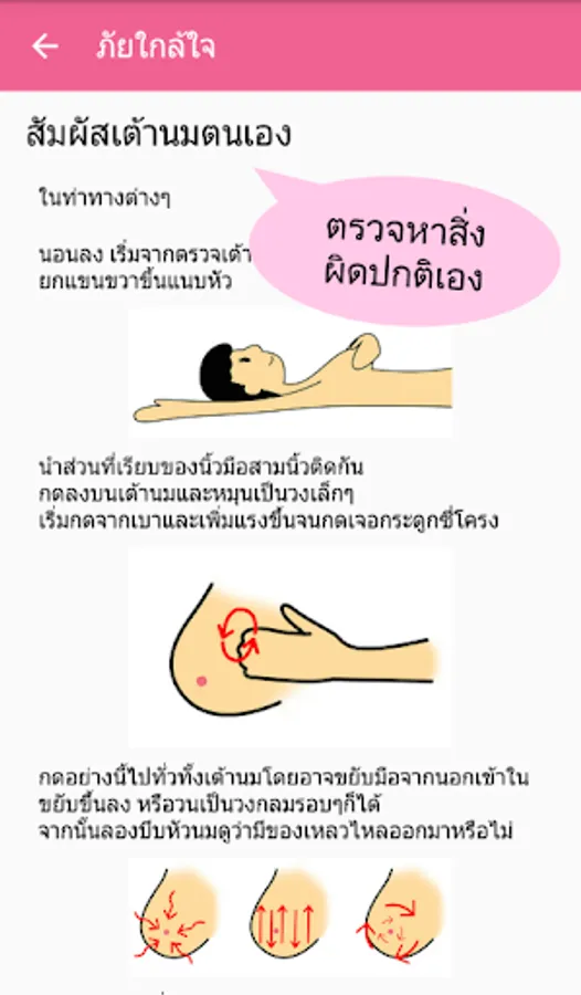 Learn the facts about breast cancer, risk factors, and breast self-examination through this Pai Klai Jai application.