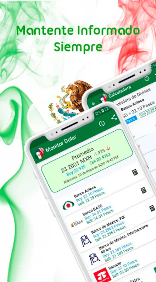 Our app "The dollar in Mexico" shows you an updated list of the dollar for sale and purchase in the main Banks of Mexico.