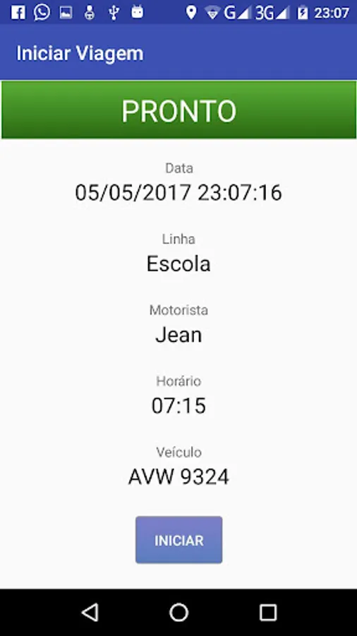 The system for travel control allows the start of registration and to journey and start and end trips and control charts.