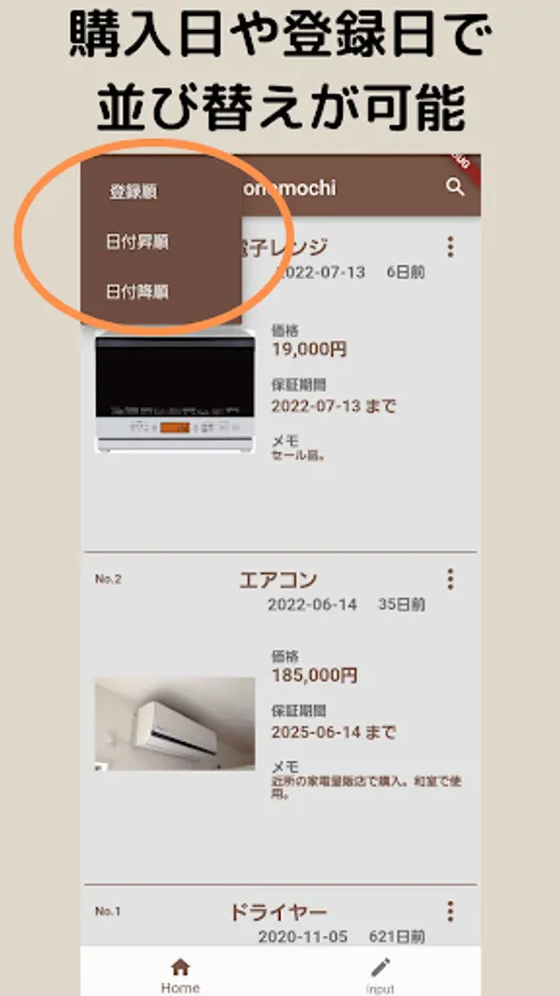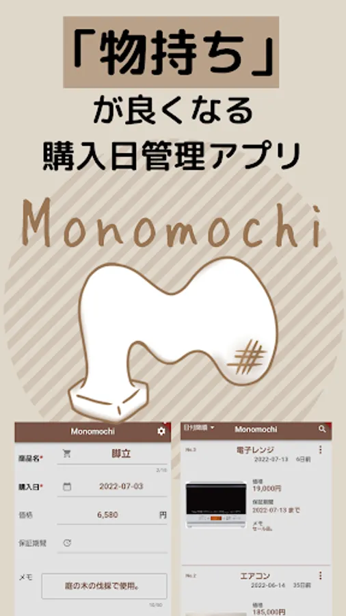 ◆ Monomochi is an application that allows you to easily register and manage purchased products.