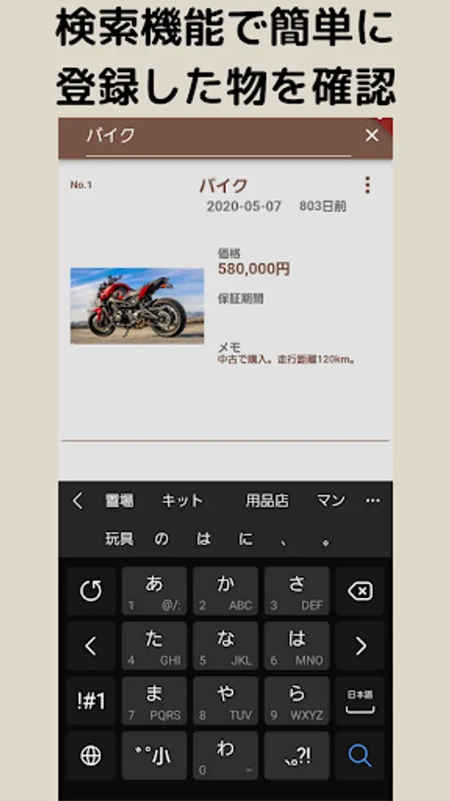 By managing when you bought it with the app, you don't have to worry about buying the same thing. If you know that you have a long life, you will become attached to it, and you will be a good person to have a good possession! !!