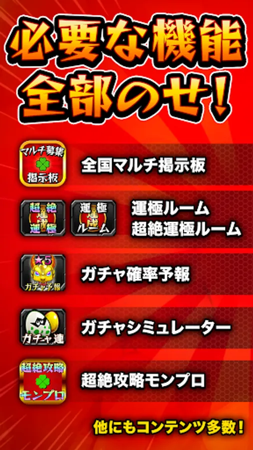 This app is an unofficial service of Monster Strike and has nothing to do with the operating company of Monster Strike or the official Monst capture app. This bulletin board can be used free of charge.