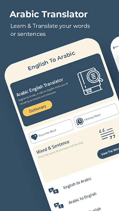 With English Arabic Translator you can translate words and text from English to Arabic and translate Arabic to English.