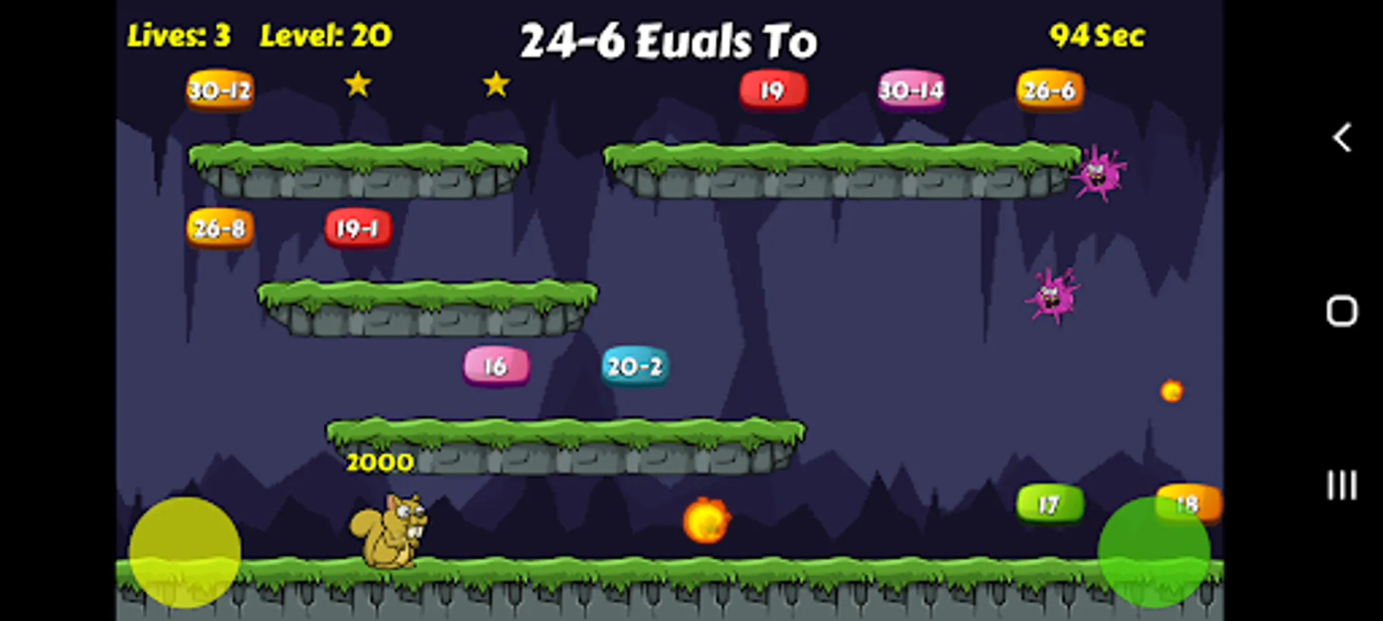 Each level challenges you to solve math problems within a tight 100-second time frame. But here's the twist: use your squirrel's precision to hurl Acron at incorrect answers and obstacles while collecting the correct ones to score points. Can you guide your squirrel through the math-filled maze, defeat obstacles, and become the ultimate Math Master?"