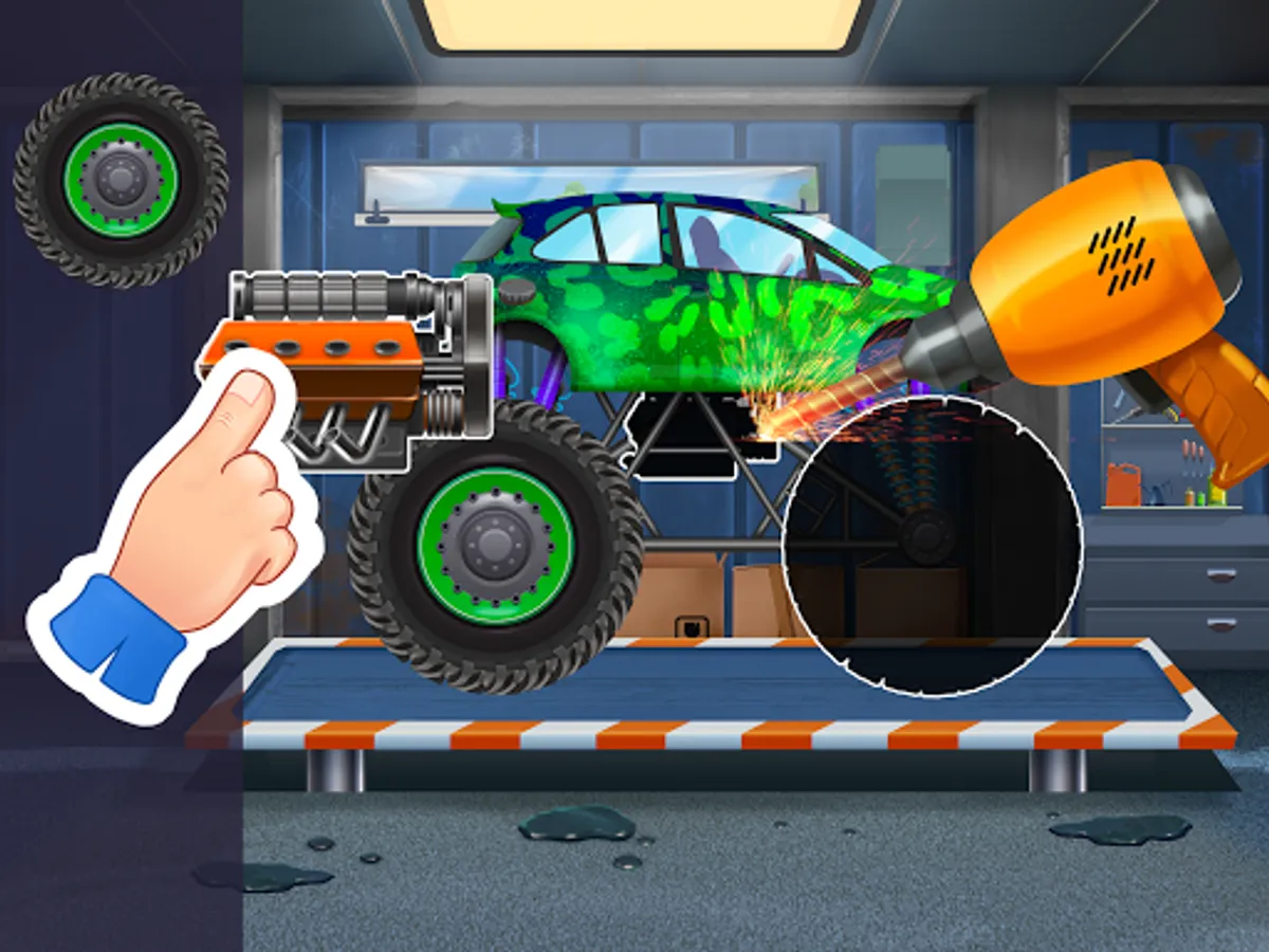 Assemble your own monster truck! Just take a part of the vehicle and move it to a suitable place. Fun and easy like solving a puzzle!