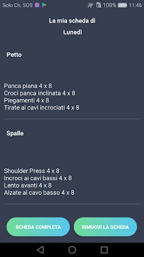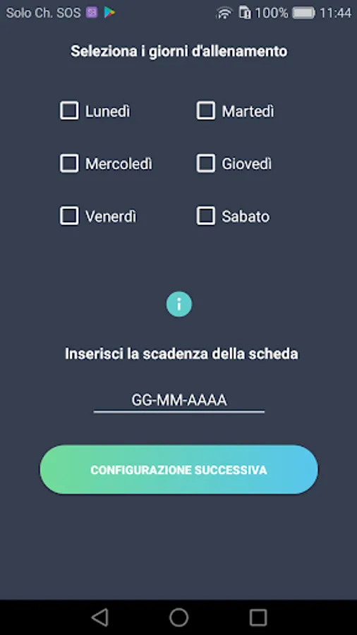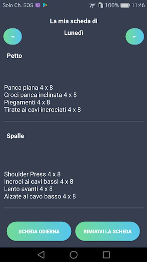The idea came from the desire to apply technological innovation for bodybuilding training. Stop the paper and build your gym card! Enter manually the days of the week you are training, the expiration date of the card and two muscle groups for each day you choose. Subsequently it populates all the exercises in the muscle groups and the relative series and repetitions. After this configuration, you will see at each opening of the app the muscle groups and exercises you have entered for the current day or week if desired. When the card expires, you will have the possibility to update it, making the configuration again. The app includes a login and registration form. In case of loss of the password, you will have the possibility to receive it by email.