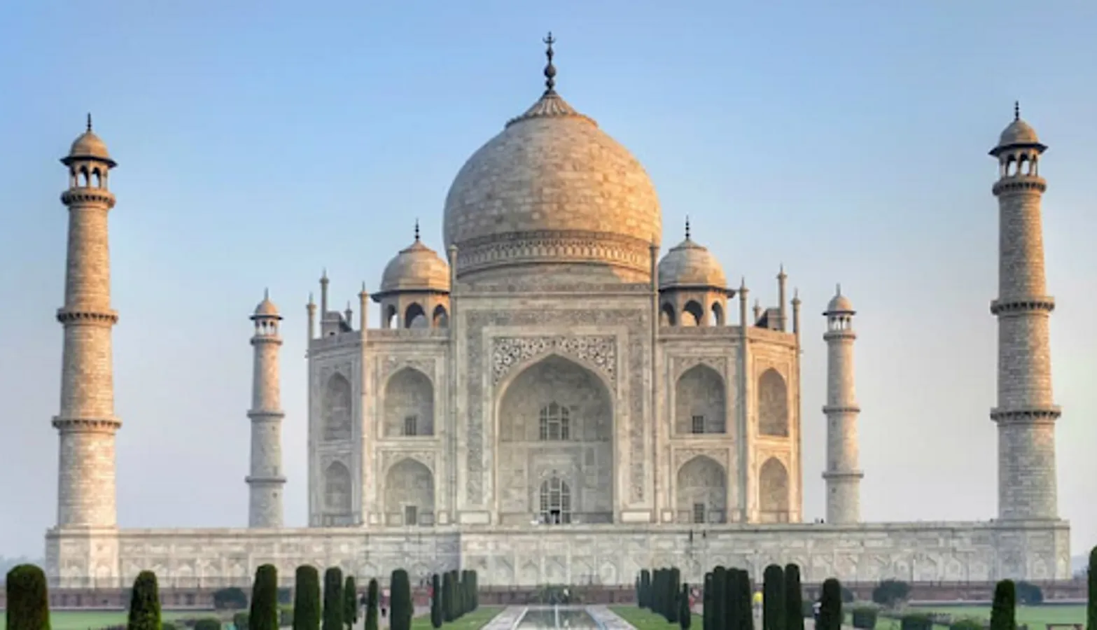 · TAJ MAHAL IN INDIA. After going through the door, one of the most beautiful constructions that one can imagine is shown before our eyes. It is a symbol of love, as it was built by Emperor Shah Jahan between 1631 and 1654 in the city of Agra as a posthumous offering for his wife Mumtaz Mahal, who died after giving birth to her fourteenth child.