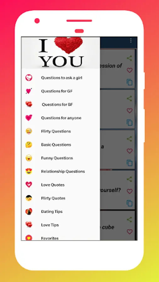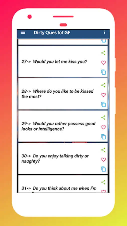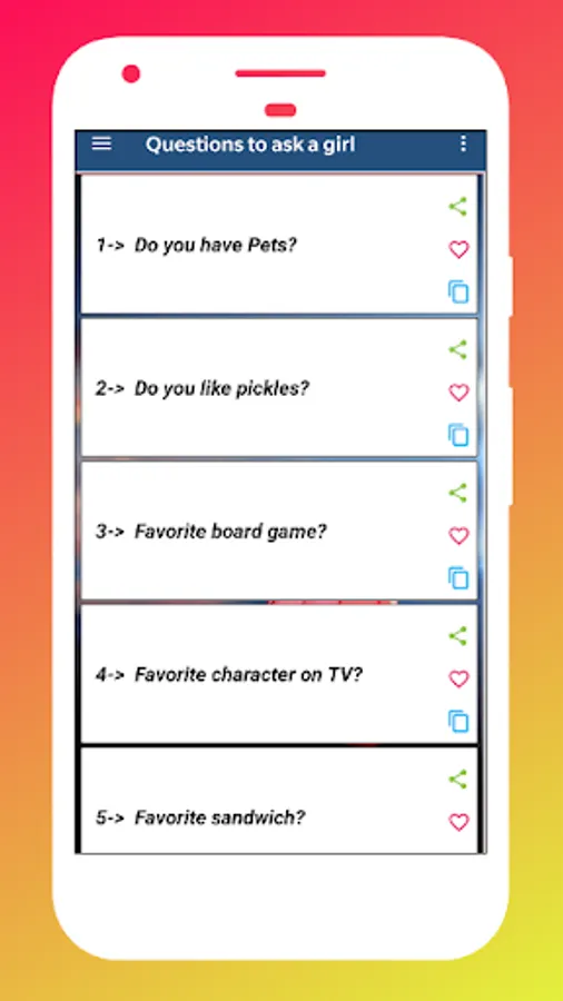 In this App we have given different type of questions to ask a girl. Ask the most appropriate questions as per the condition and situation.