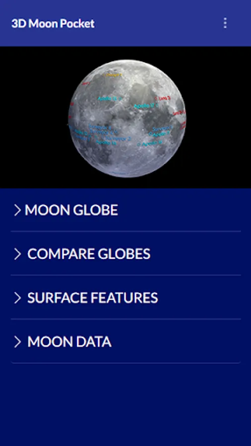 Beyond the scientific aspects, Moon Globe 3D allows you to bask in the sheer beauty of our celestial neighbor. Delve into the pages of history and embark on a virtual journey to the landing sites of historic space missions. Explore the locations where successful US Apollo and Surveyor missions, Soviet Luna missions, and Chinese Chang'e missions touched down on the lunar surface. This unique feature allows you to retrace the steps of these pioneering ventures, connecting you to the rich legacy of lunar exploration.