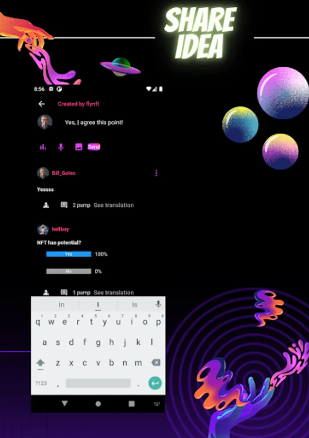 To enable people all over the world to have unlimited interaction in a super fast network environment. We want to build a free and colorful world with all kinds of content sharing. We will allow users to share NFTs, picture galleries, and discuss intellectual ideas in an innovative forum format. We are going to bring the whole world together.