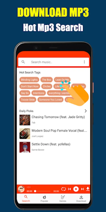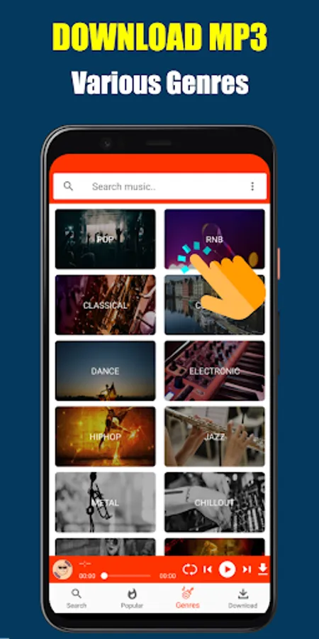 Powerful and Fast Music Player with material design . Music Downloader also manage all your music files easily .This music player also supports almost all types of mp3 ,wav , flac raw aac files and other audio formats . Easily browse and play music songs by genres , albums , artists , songs and folder .