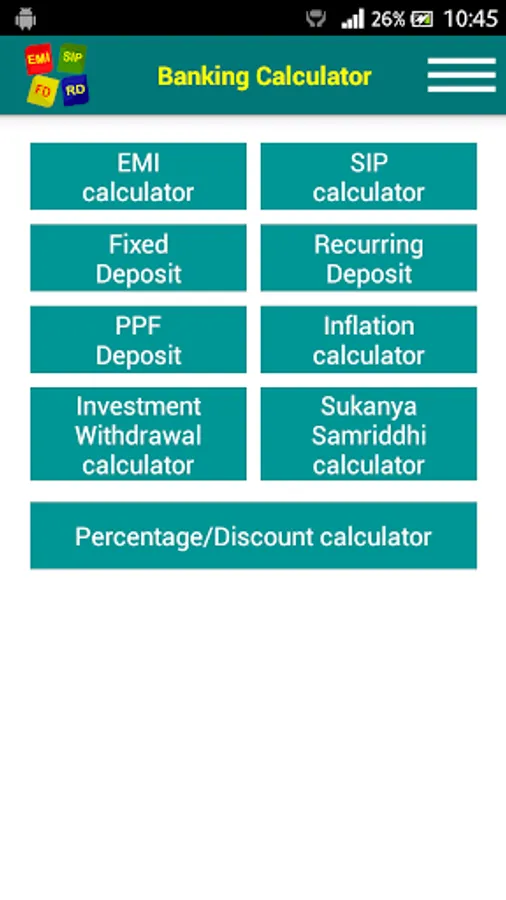 Banking Calculator includes following Banking and Financial calculation features.