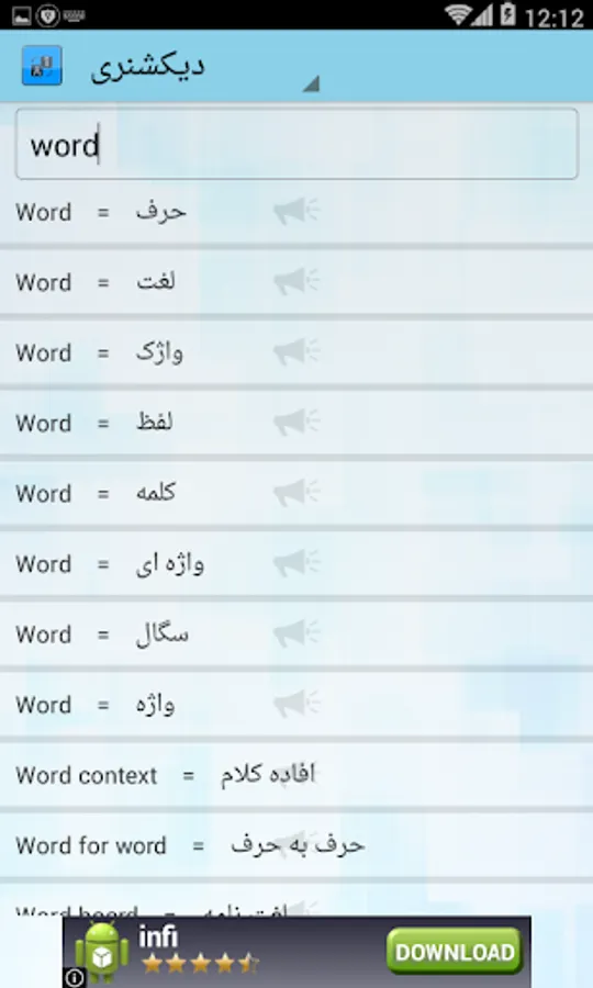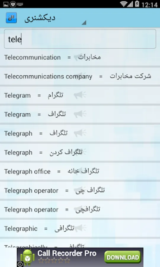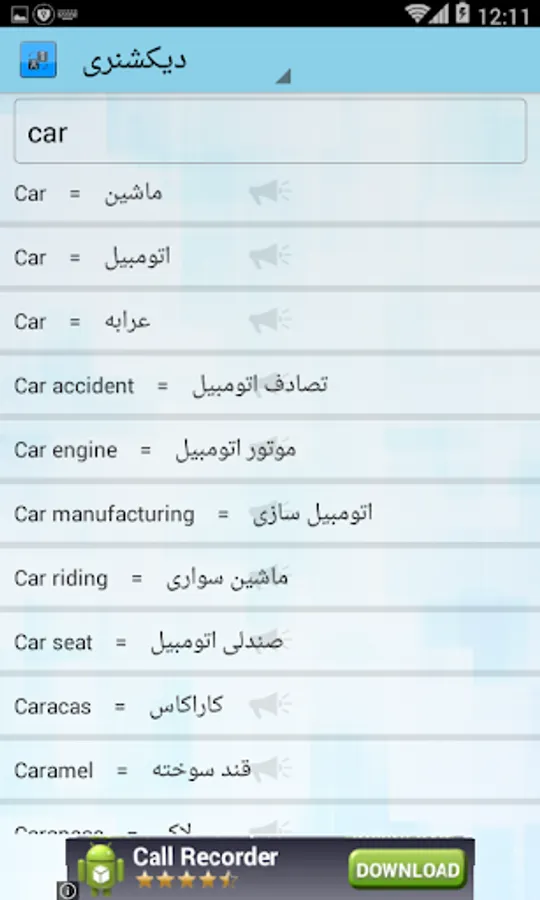 The dictionary can Persian words in English and the English words in Persian meaning.