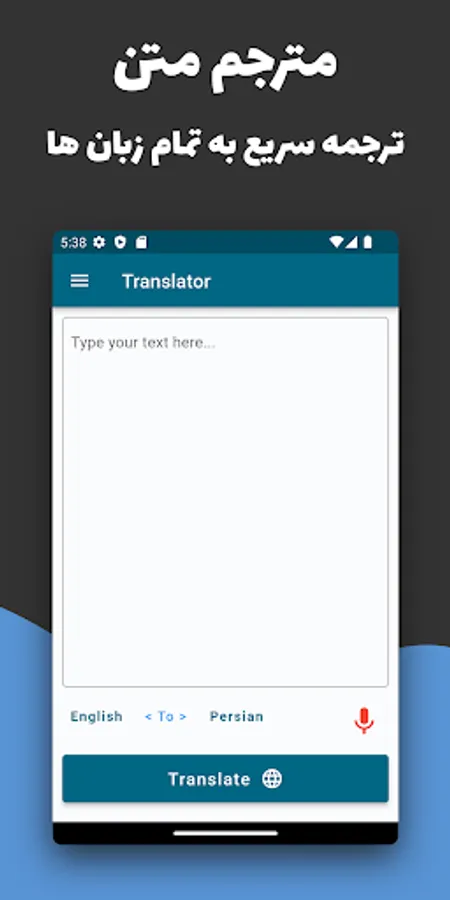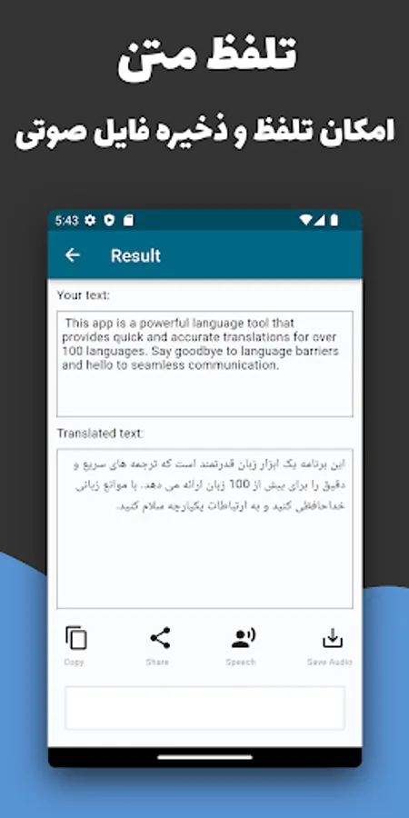 This application has a very simple and user-friendly interface. With this user interface, you can easily use its various features and quickly translate your texts. Also, due to the simplicity of the user interface, even users who are not familiar with this application can use it easily and quickly.