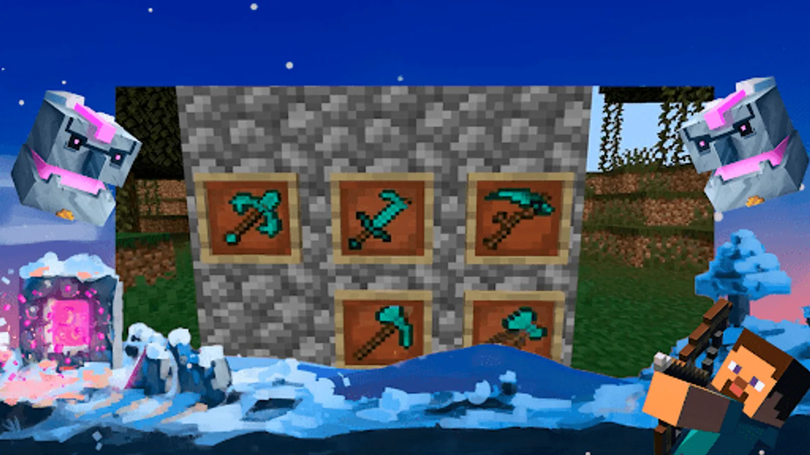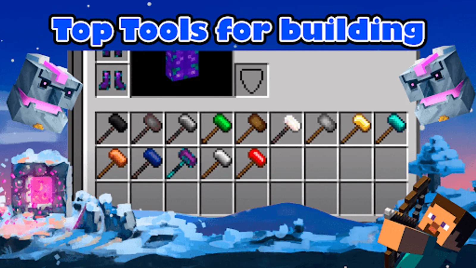 Addition Tools for Minecraft PE perfectly diversifies the gameplay and is suitable for playing with friends.