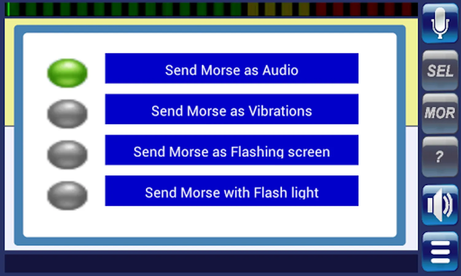 The Morse transmitter also has an audio VU meter with colored LEDs which will be active while speaking.