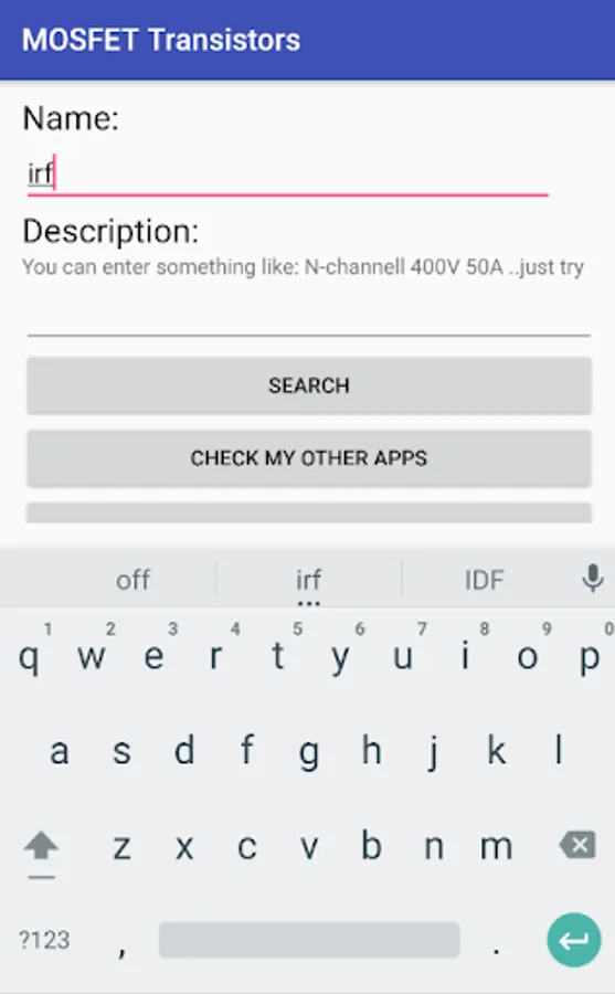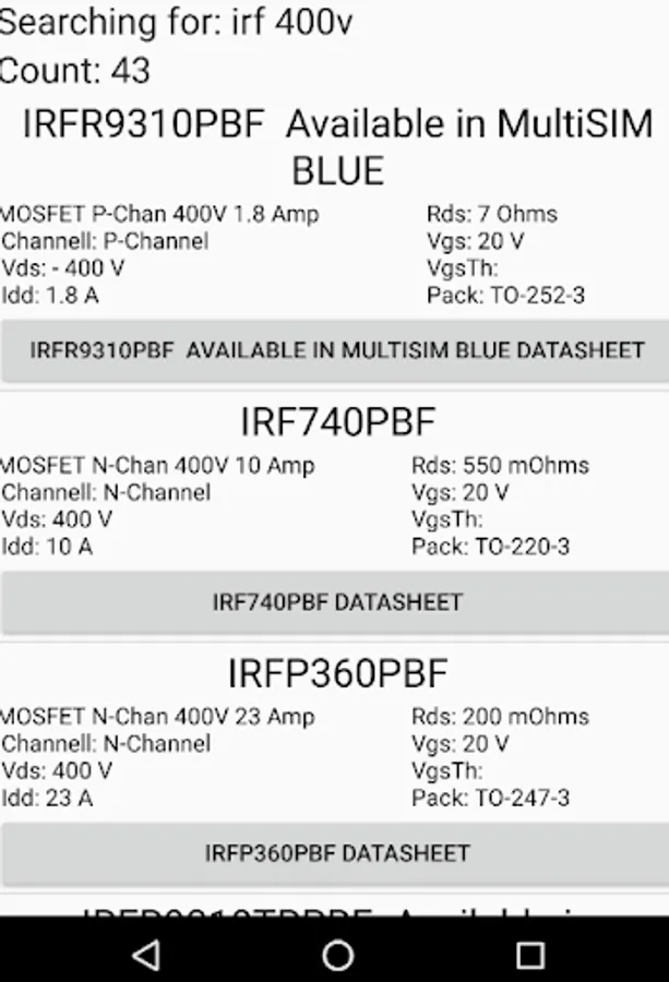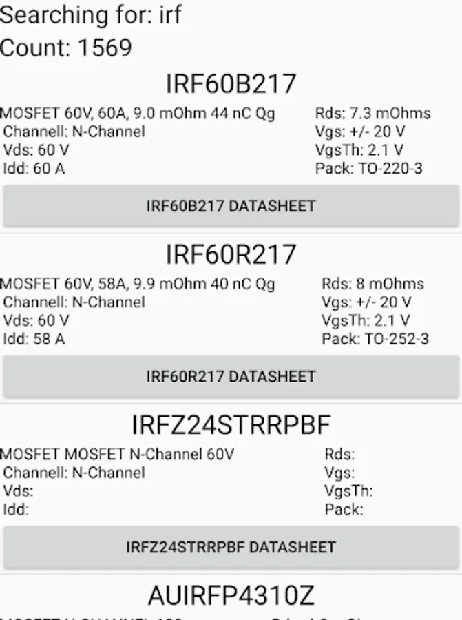 You can list or search for MOSFET transistors in this app
