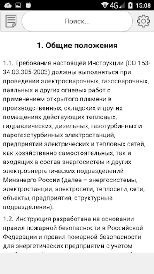 Requirements 🞵 present Instruction (JI 153-34.03.305-2003) should be performed during electrical welding, gas welding, soldering and other hot work by using an open flame in the production, storage and other facilities existing thermal, hydraulic, diesel, gas and steam turbine and gas turbine power plants, enterprises of electric and thermal networks as economically independent and a part of power systems and other power departments Russian Ministry of Energy (hereinafter - the power system, elec plant sector, electricity, heating, network, objects, enterprises, structural units).