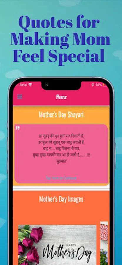 Looking for the perfect way to honor the amazing moms in your life this Mother's Day? Look no further than our new app! With a wide selection of messages, images, quotes, and shayari in all languages, we've got everything you need to express your love and gratitude in a meaningful way. Here's what you can expect from our app: