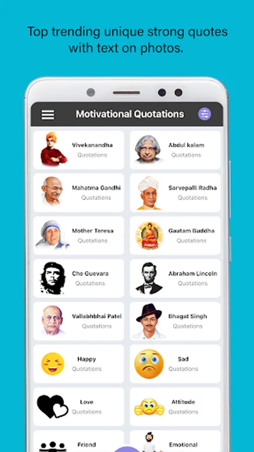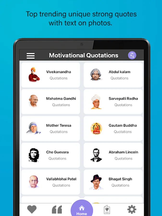We serve up a daily dose of motivation with our inspirational collection, including famous authors like Swami Viveka Nanda, GautamBuddha and Che guevara, Love, Friends, Emotional quotes etc..!