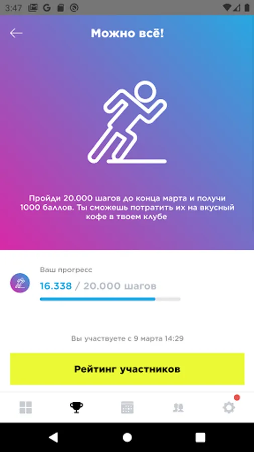 Новый способ мотивировать себя! Участвуйте в челленджах. Вы можете бросить вызов друзьям и соревноваться с другими клиентами клуба.