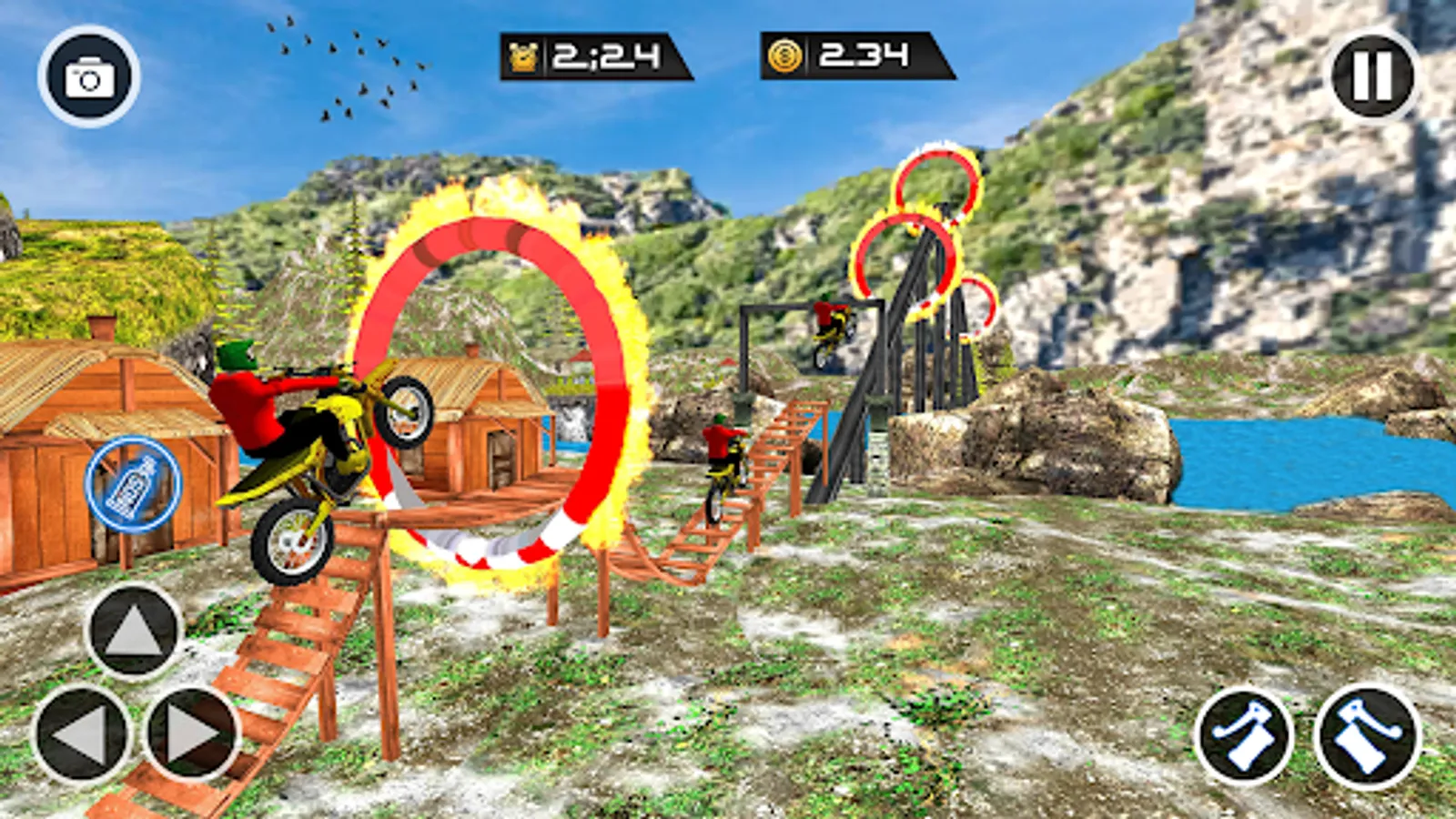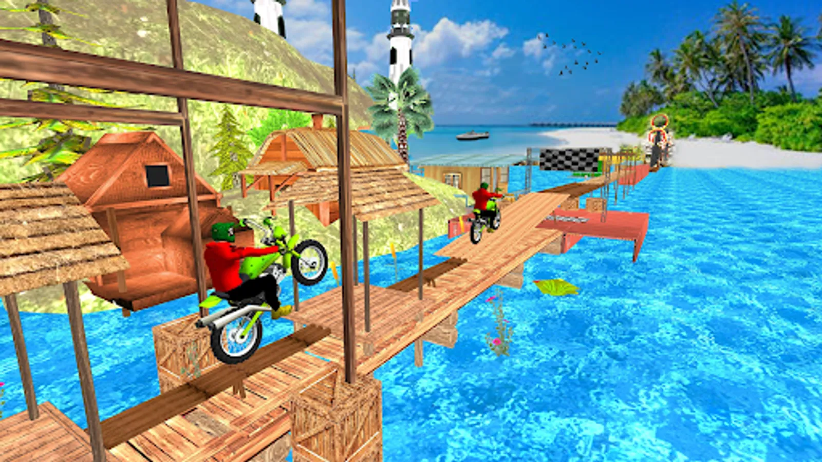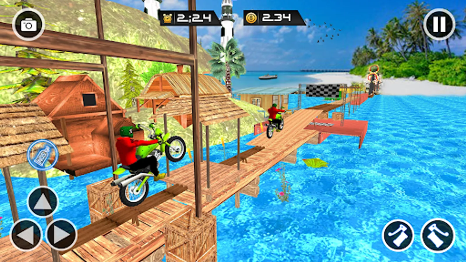 Step into the role of motorcycle racing games in this crazy bike stunts 3D. In the dirt bike games experience motorcycle racing games as you traverse forests and mountains in the stunt bike games driving. The Crazy Bike Stunts 3D navigates carefully through off-road paths as the challenges of driving a racing moto make the journey perilous in this bike racing stunt.