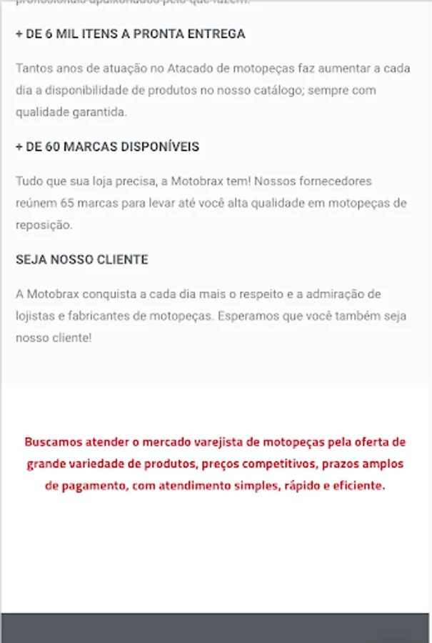 We are a wholesaler of Motoparts and our application aims to bring our retail customers closer to the company, in a practical and fast way.
