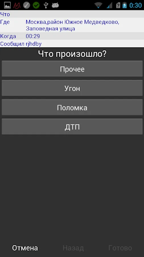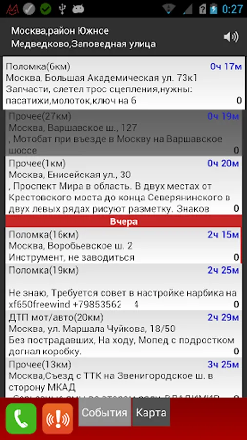 - Create messages about accidents, breakdowns and other situations with reference to the geographical location