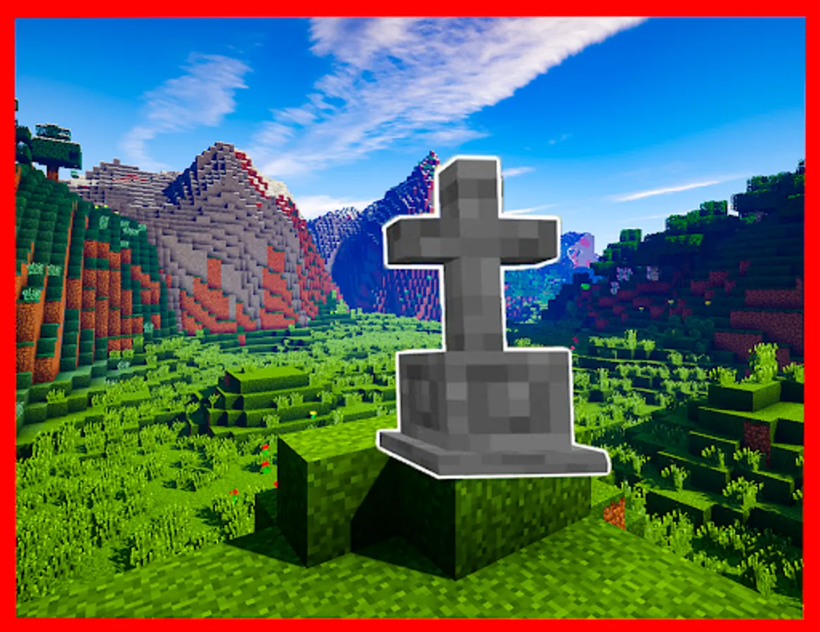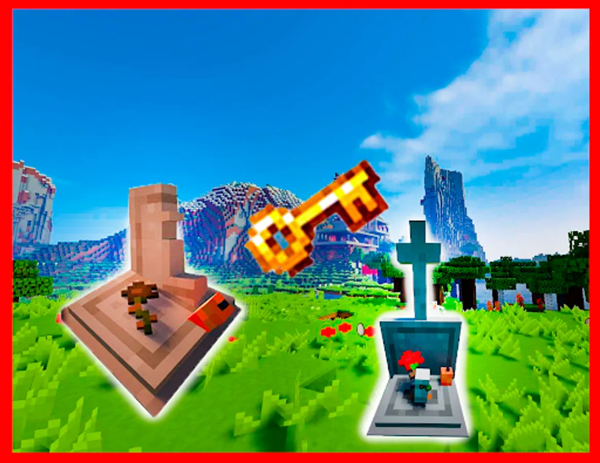 Mods Stone Tombs for Minecraft, when the player dies, a tomb with the player's name is generated, it will give the player a key. If the key is enchanted, it will allow the player to teleport to the tomb created at the time of death and collect items.
