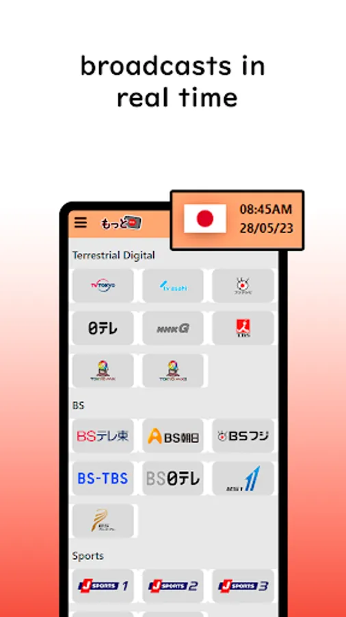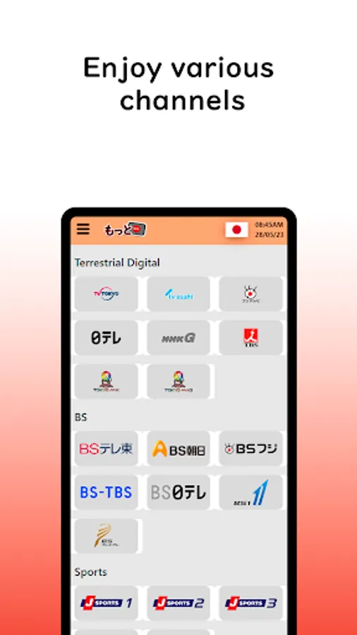 MottoTV is a streaming application for various Japanese television channels. you can enjoy your favorite programs wherever you are, MottoTv notifies the time a program begins to keep users aware and ensure they don't miss any program.