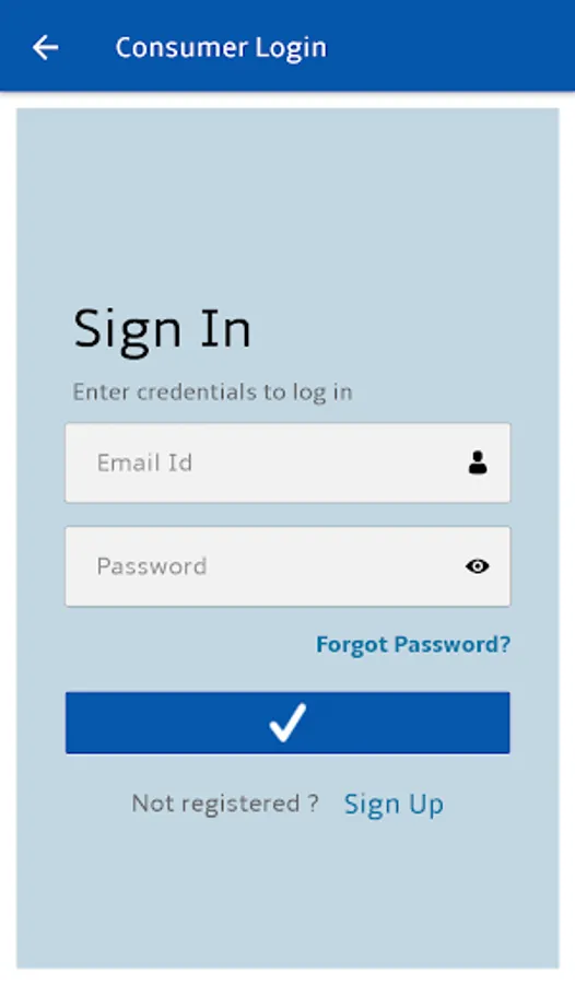 Step 1. For onetime registration, consumer is required to click on the signup giving details required and verifies through his/her email. The User id and password are created.