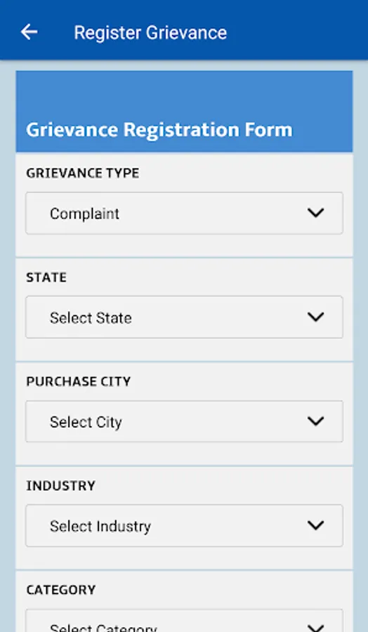This Mobile App is an alternate way to register consumer related grievances in the portal https://consumerhelpline.gov.in. The website was launched by the Department of Consumer Affairs to create awareness, advise and redress consumer grievances and act as a central registry for lodging consumer grievances. As per the Consumer Protection Act, 2019, consumers can approach Consumer Commission at the District, State and National level for dispute resolution. Though all efforts will be made to address grievances made on the portal, if the grievance is not redressed to the full satisfaction, a consumer has choice to approach the appropriate Consumer Commission.