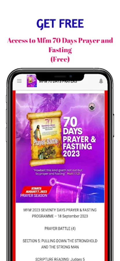 The Application comes with Mfm 70 Days Fasting and Prayers daily notifications