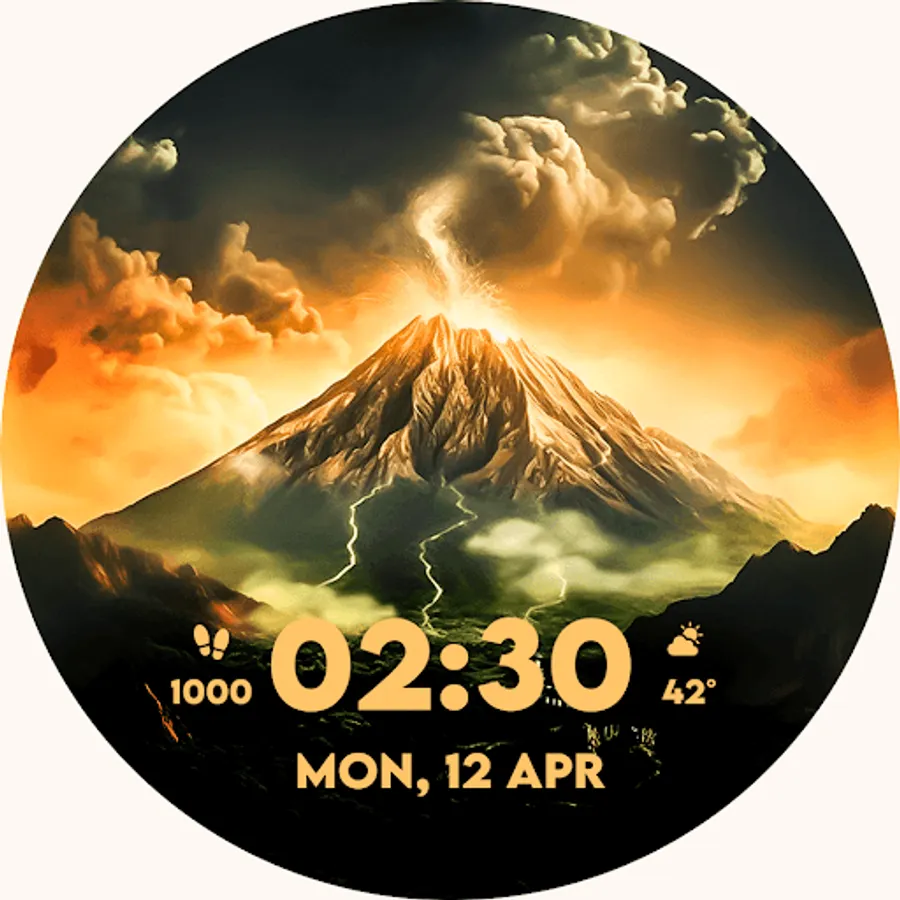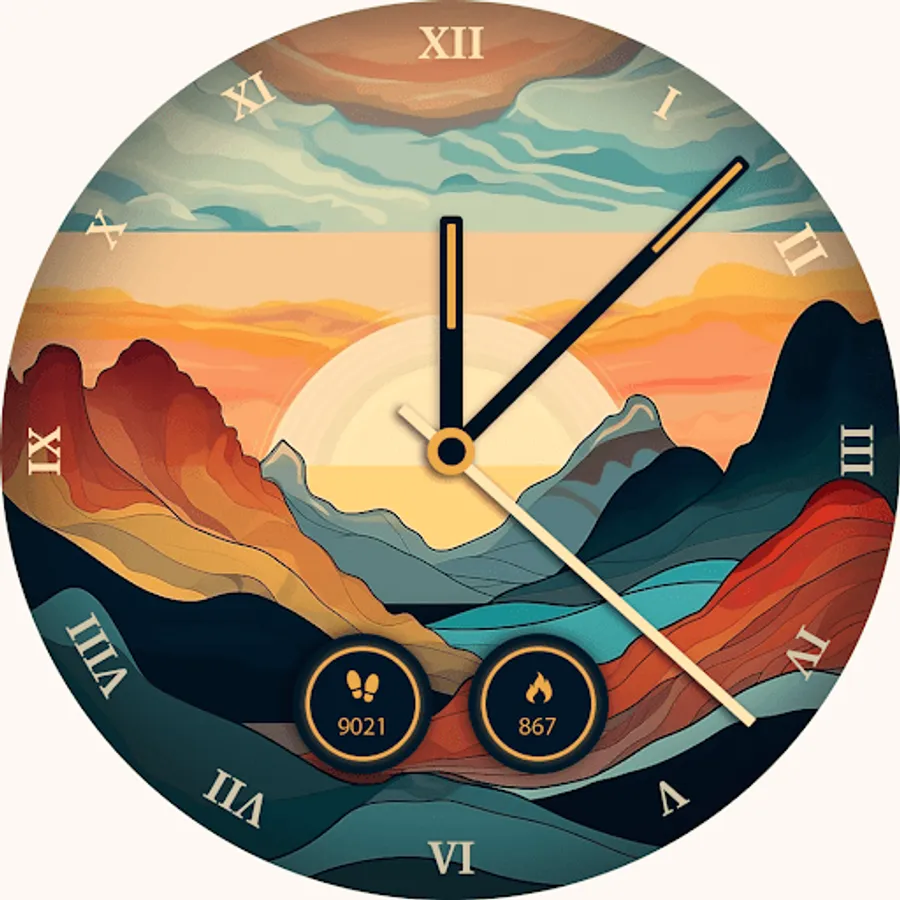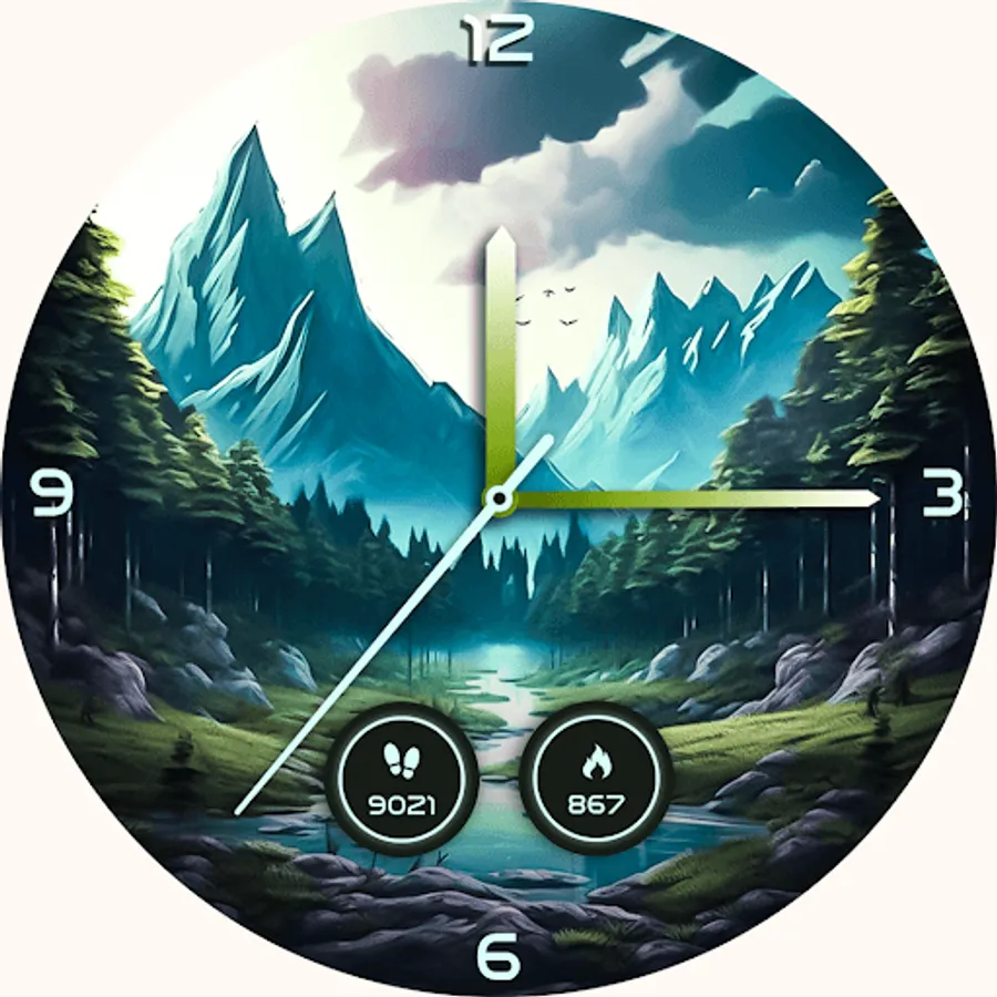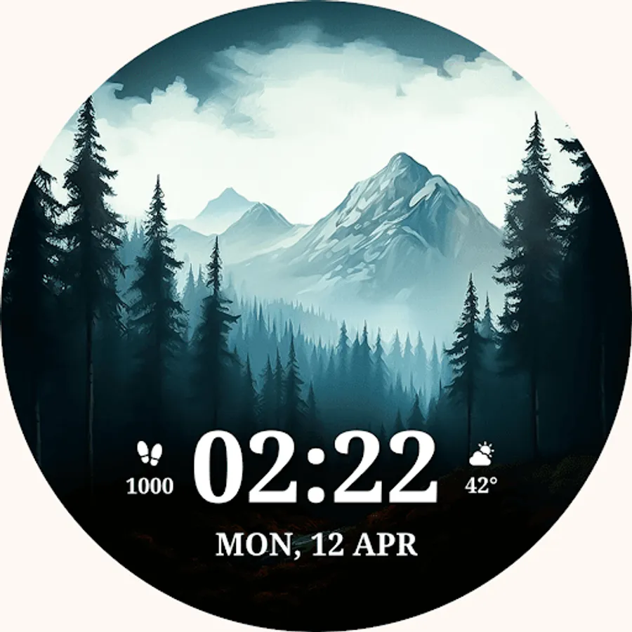 The app gives a variety of mountain landscape watchfaces. All the watchfaces are carefully designed for nature enthusiasts and outdoor lovers. With every glance at your watch, be transported to awe-inspiring peaks, serene valleys, overflowing volcanoes, and cascading waterfalls, creating a sense of calmness and wonder in your daily life.