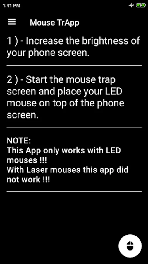 2 ) - Start the mouse trap screen and place your LED mouse on top of the phone screen.