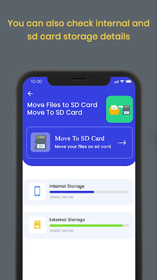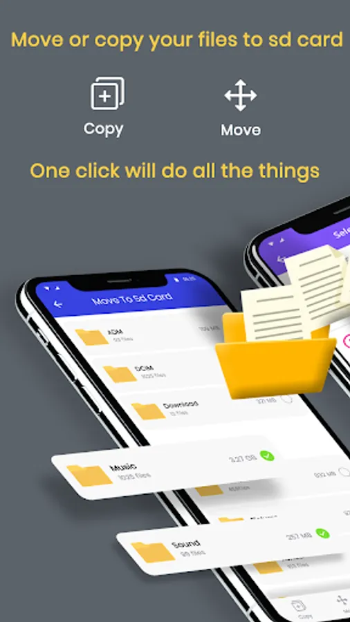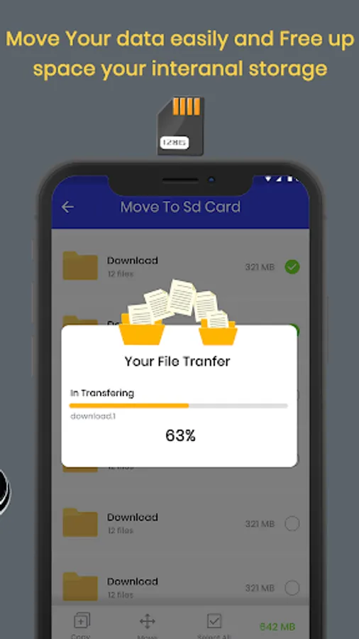 Get the all new and the advanced Move Files To SD Card App which allows you to Move Files & Apps To SD Card. Move your Photos, Videos, Musics, Zip Files, and all Other Downloads from your Phone Memory to SD card. You no longer have to worry about low Internal Memory.