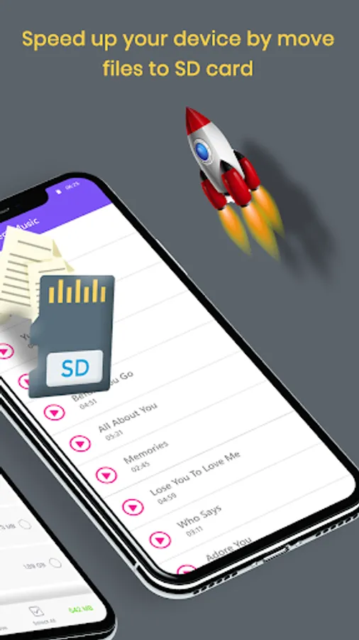 If you are looking to transfer all your Audio and Music from Phone Storage to a SD Card then Move Files To SD Card or Move App To SD Card is the best app for you.