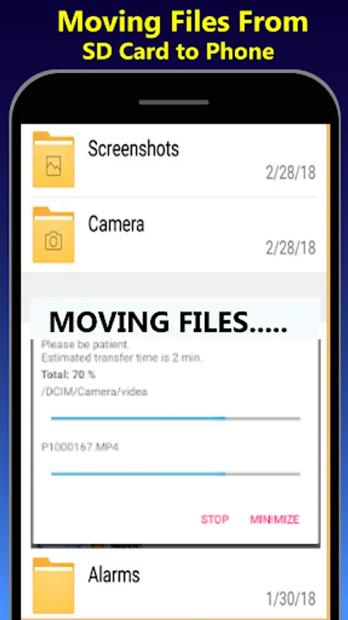 Get your files from SD2Phone, Phone2SD, gallery to sd card, Move file from one folder to another, moved Data from one place to another. File Move Phone to SD card is especially useful for devices with low phone memory capacity, which apps does not allow the phone to store the captured content directly on the SD card, or those who want to quickly and easily back up files to SD card or transfer data. movers Brooklyn is to Move file to SD Card is fast solution to just move your documents or files from internal memory to SD card (Transfer phone to stcard) with one click.Transfer files without losing quality.