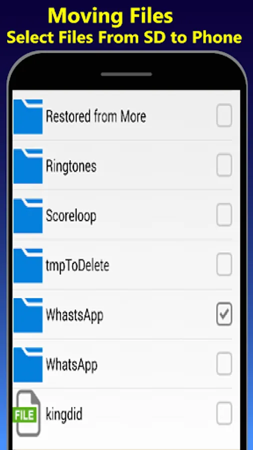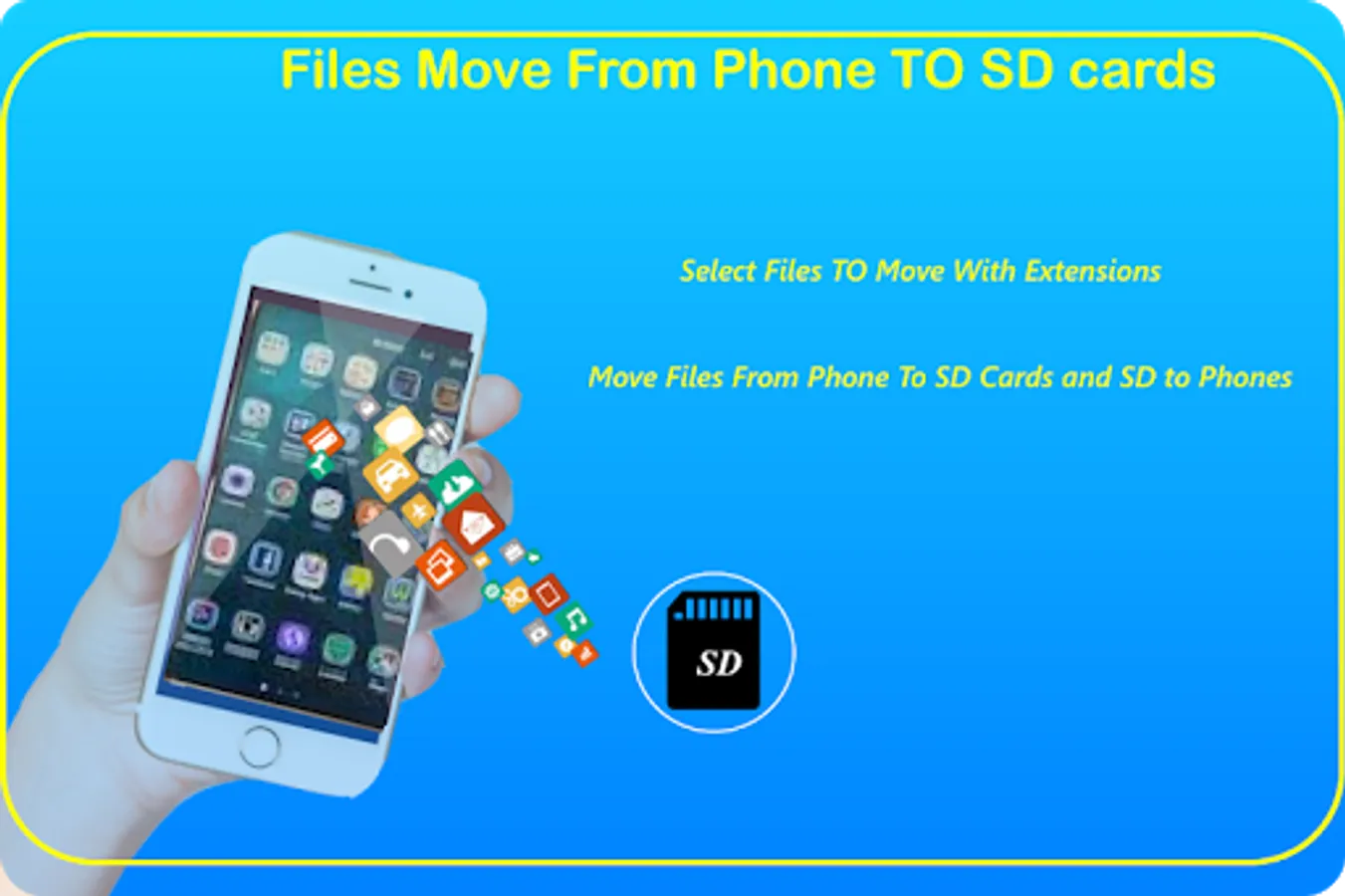 This is a File Share apps that Move your data from SD card to phone or Phone to SD card that Easy to Backup your important files, application of my files, File Transfer, Sharing Apps, memory file, phone memory file. Get your files move in sdcard, memory card handle all your files, save space for you and send files anywhere transfer file data transfer phone to SDCard or file move from phone storage to sd card.