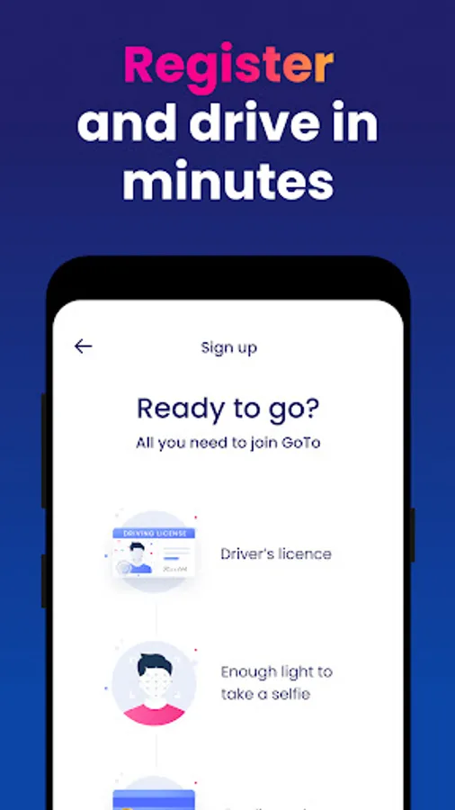 So download the GoTo car-sharing app and create an account in less than 2 minutes!