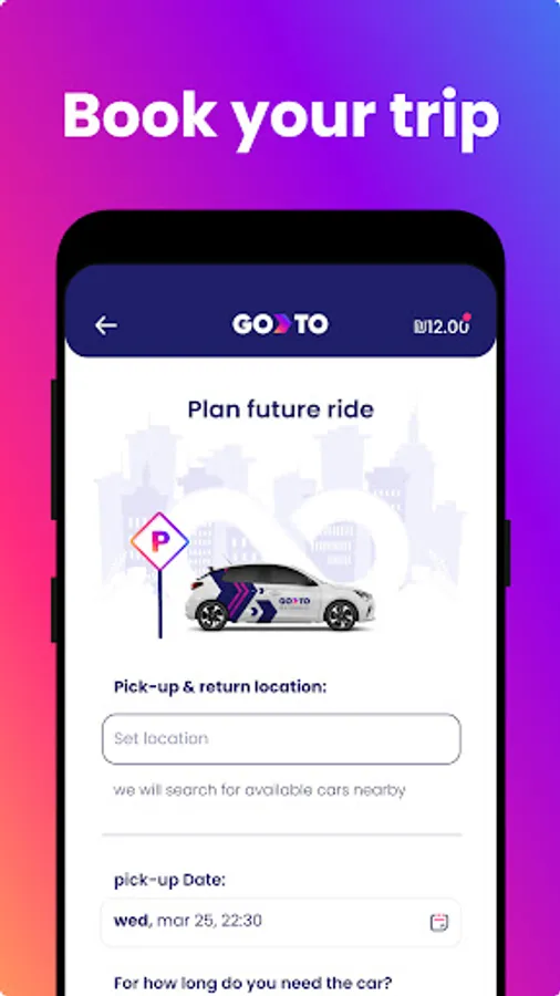 With GoTo cars, you can book in advance or 15 minutes before the rental through the app. Registration is quick, no paperwork is required, and cancellations are flexible. GoTo cars include gas, insurance, and maintenance.
