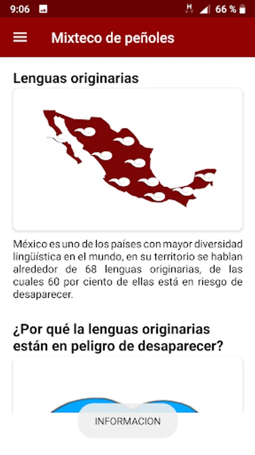 Mixteco de Santa María Peñoles is an application that contains 120 words of a variant of Mixtec better known as Mixtec de Peñoles, it allows us to spread this original language symbol of our culture.