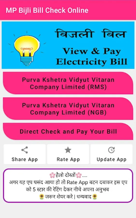 Users can view all three type of electricity bill of Madhya Pradesh through this app.