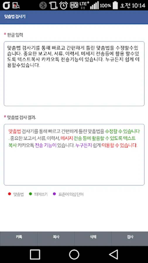 * A powerful recommendation app that catches confusing Korean spelling and spelling at once.